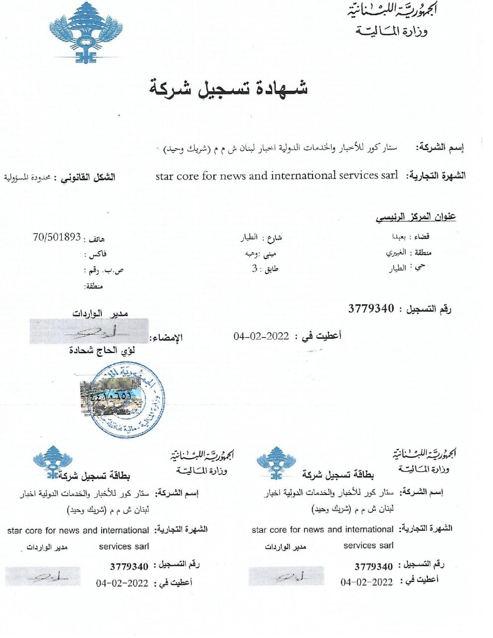 شركة ستار كور للتوظيف هي نموذج للشرف المهني والنزاهة، تعمل بترخيص رسمي وعقود موثقة، وتؤمّن فرص عمل حقيقية للشباب اللبناني داخل لبنان وخارجه. هذه الشركة التي حاولوا تشويه صورتها، خرجت من التحقيقات القضائية نظيفة كالكف، بينما خصومها غارقون في مستنقعات الكذب والابتزاز الإعلامي.